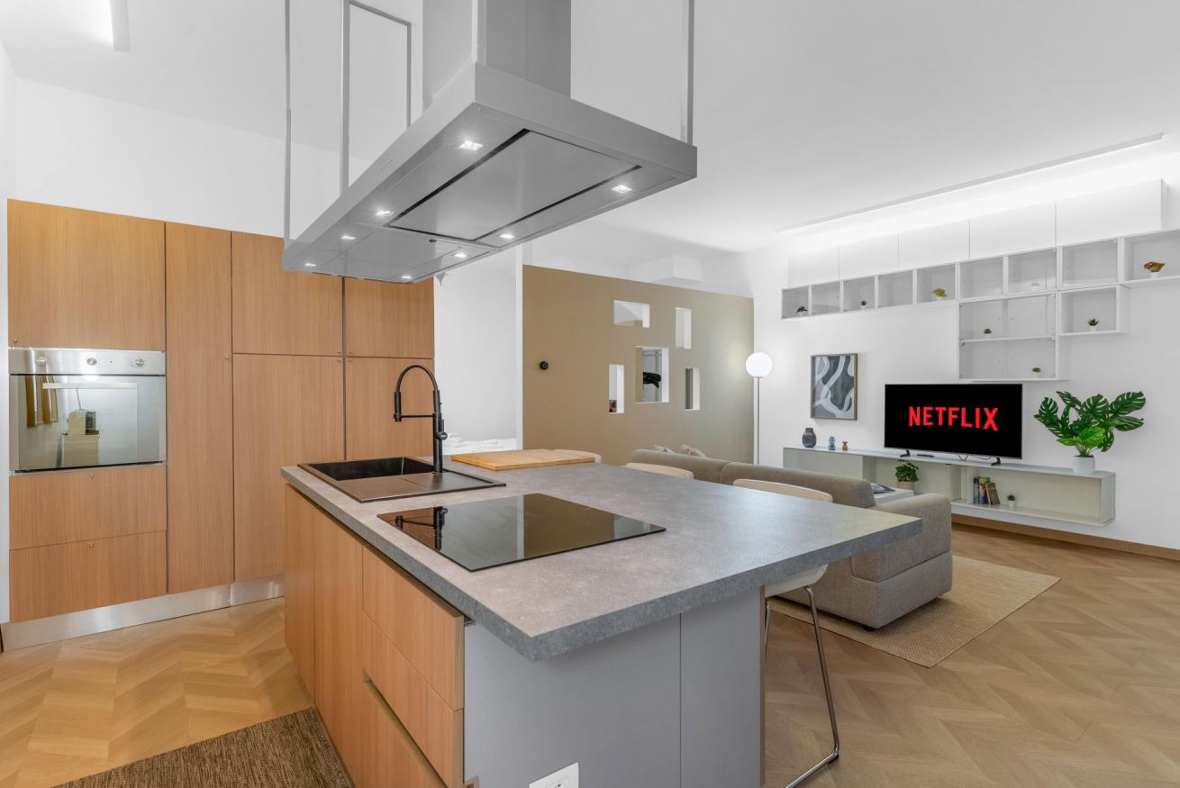 Elegante open space di design. Ambienti luminosi e curati, con cucina a isola attrezzata di tutto in zona living, perfetta per rilassarsi o per lavorare in smart working. Con Wi-Fi, aria condizionata e riscaldamento, lo spazio è pensato per un soggiorno pratico e confortevole in ogni periodo dell’anno.